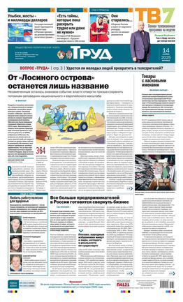 Одна из старейших общественно-политических газет (издается с февраля 1921 года). Корреспонденты «Труда» ежедневно рассказывают читателям о политике, культуре, спорте, экономике, жизни общества, самых интересных новостях дня и многом другом. Издание рассчитано на широкий круг читателей.